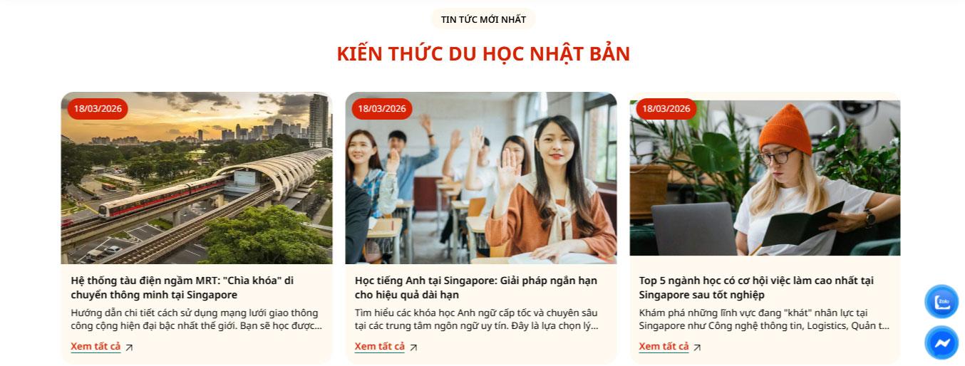 Website tích hợp khu vực Câu hỏi thường gặp (FAQ) tiện lợi bên cạnh hình ảnh chuyên viên tư vấn giàu kinh nghiệm, giúp giải đáp nhanh các thắc mắc về thủ tục visa và hồ sơ du học. Phần Blog "Cẩm nang du học Kadu" được thiết kế dạng thẻ (card) hiện đại, hỗ trợ cập nhật những thông tin mới nhất về chính sách giáo dục và cuộc sống tại Singapore.