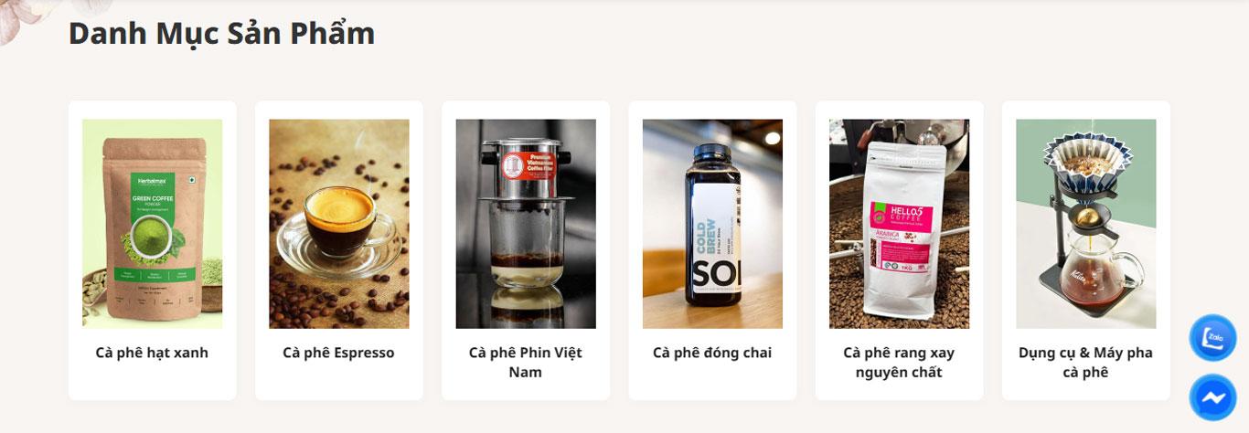 Phần “Danh mục sản phẩm” sử dụng hình ảnh thực tế, bố cục dạng card giúp: