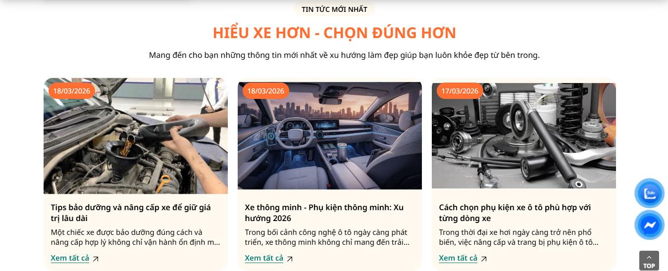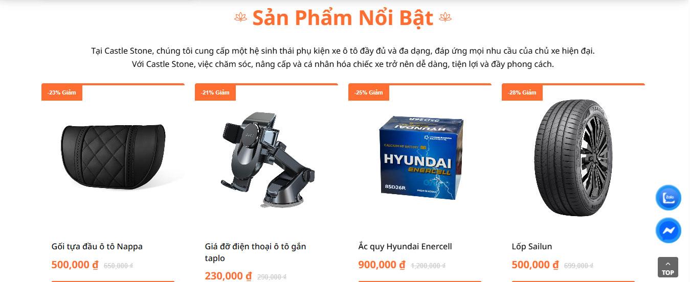 Website được thiết kế theo phong cách mạnh mẽ, hiện đại với tông màu cam và trắng chủ đạo, chuyên biệt cho lĩnh vực phụ kiện xe ô tô chất lượng cao. Giao diện mang lại cảm giác đẳng cấp, tin cậy và đậm chất thể thao, giúp những người yêu xe dễ dàng tìm kiếm các trang thiết bị nâng cấp tối ưu và trải nghiệm mua sắm phụ kiện chuyên nghiệp, thuận tiện.