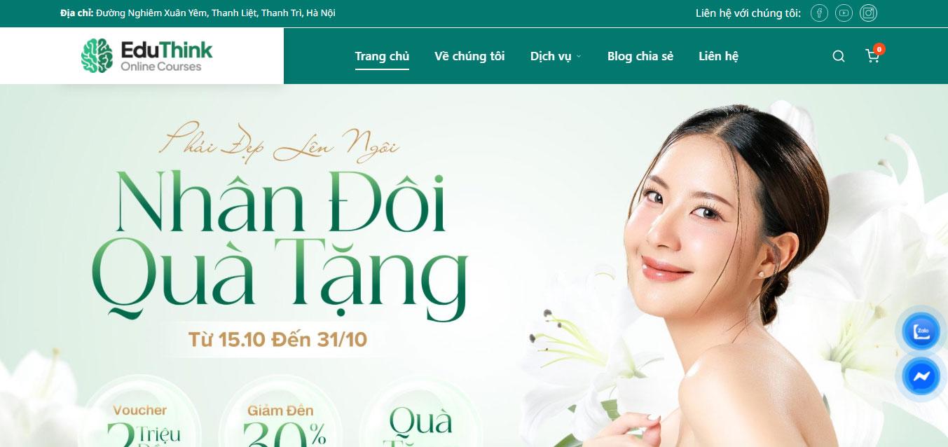 Giao diện website sử dụng tông màu đỏ kết hợp cùng nền trắng thanh lịch, tạo nên một không gian trực quan đậm chất "Wellness" và sự thư thái. Banner đầu trang nổi bật với hình ảnh người mẫu đang tận hưởng liệu trình spa cùng thông điệp "Beauty Clinic For You", khẳng định vị thế là điểm đến lý tưởng để tái tạo năng lượng ngay khi khách hàng truy cập.
