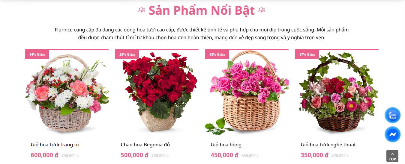 Giao diện website được thiết kế theo phong cách nhẹ nhàng, tinh tế với tông màu hồng chủ đạo, phù hợp cho lĩnh vực hoa tươi và quà tặng. Giao diện mang lại cảm giác sang trọng, lãng mạn, giúp khách hàng dễ dàng khám phá sản phẩm và trải nghiệm mua sắm trực tuyến một cách thuận tiện.