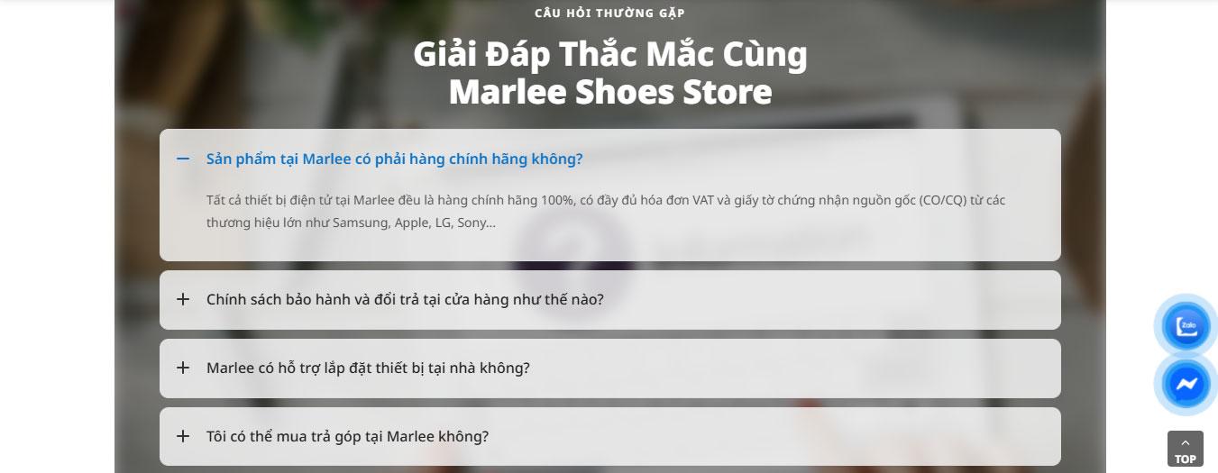 Phần FAQ – câu hỏi thường gặp được thiết kế dạng accordion, giúp người dùng nhanh chóng tìm được thông tin cần thiết mà không làm rối giao diện. Khối đội ngũ nhân sự hiển thị hình ảnh thực tế cùng chức danh rõ ràng, góp phần xây dựng hình ảnh chuyên nghiệp.