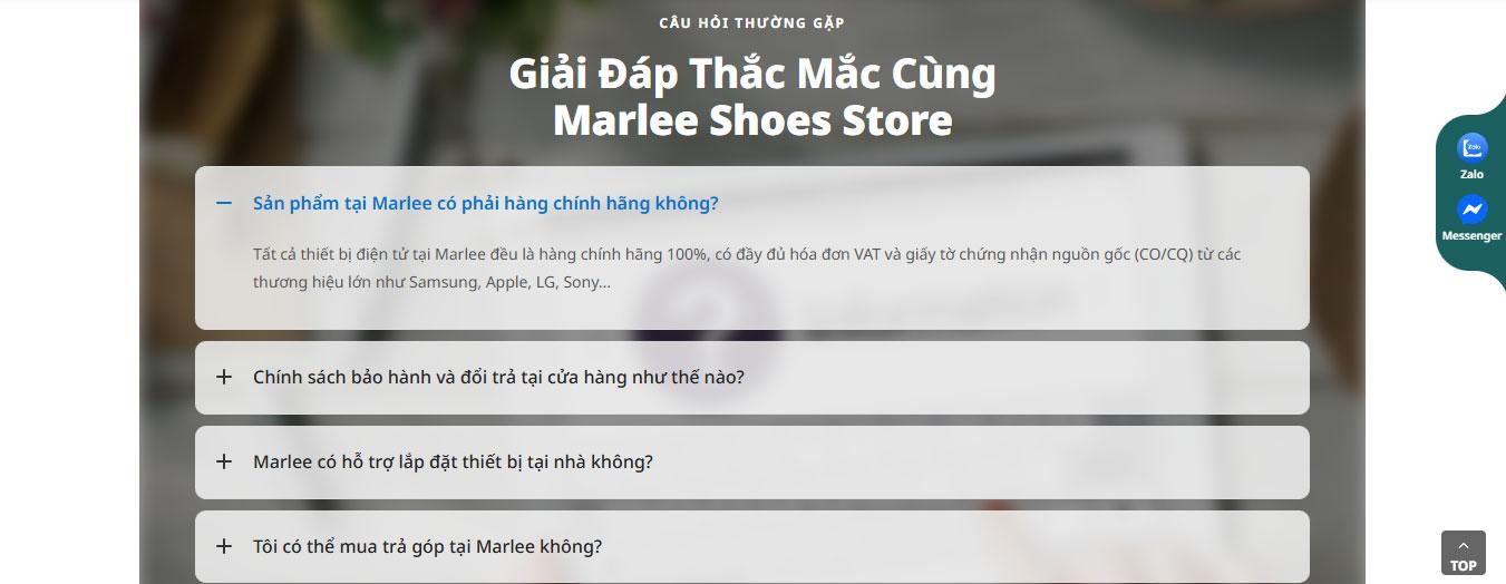 Phần FAQ – câu hỏi thường gặp được thiết kế dạng accordion, giúp người dùng nhanh chóng tìm được thông tin cần thiết mà không làm rối giao diện. Khối đội ngũ nhân sự hiển thị hình ảnh thực tế cùng chức danh rõ ràng, góp phần xây dựng hình ảnh chuyên nghiệp.
