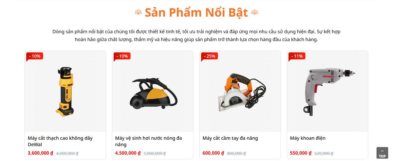 Website được thiết kế theo phong cách công nghiệp, mạnh mẽ với tông màu cam và trắng chủ đạo, chuyên biệt cho lĩnh vực cung cấp máy móc và thiết bị chuyên dụng trong cơ khí, chế tạo và xây dựng. Giao diện mang lại cảm giác bền bỉ, uy tín và hiện đại, giúp khách hàng dễ dàng tìm kiếm các giải pháp kỹ thuật cao và trải nghiệm quy trình mua sắm thiết bị công nghiệp một cách chuyên nghiệp, tối ưu.
