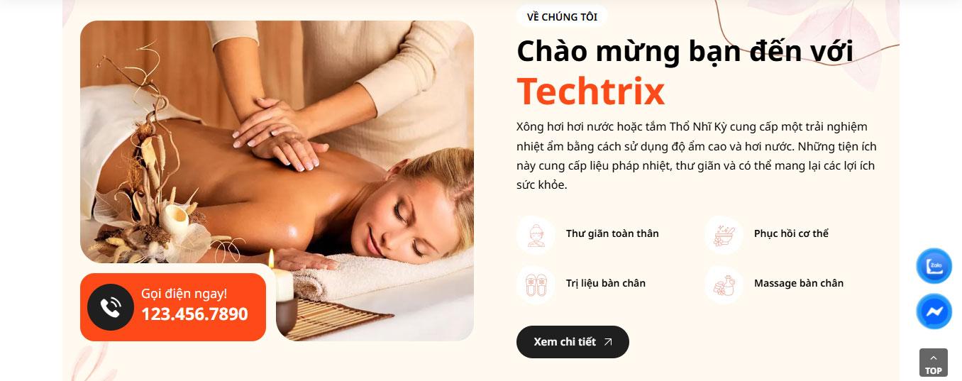 Giao diện website sử dụng tông màu cam kết hợp cùng nền trắng thanh lịch, tạo nên một không gian trực quan đậm chất "Wellness" và sự thư thái. Banner đầu trang nổi bật với hình ảnh người mẫu đang tận hưởng liệu trình spa cùng thông điệp "Beauty Clinic For You", khẳng định vị thế là điểm đến lý tưởng để tái tạo năng lượng ngay khi khách hàng truy cập.