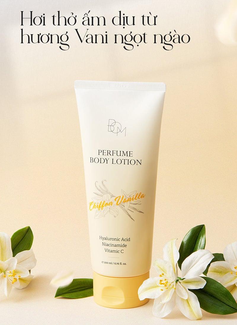 Sữa Dưỡng Thể Hương Nước Hoa B.O.M Perfume Body Lotion là sữa dưỡng thể đến từ thương hiệu B.O.M. Hương liệu nhập khẩu từ Pháp, cùng công thức thuần chay, giàu chiết xuất dầu thực vật, giúp dưỡng ẩm sâu mà vẫn khô thoáng, dễ chịu trên da. Lưu hương bền bỉ suốt 24 giờ.